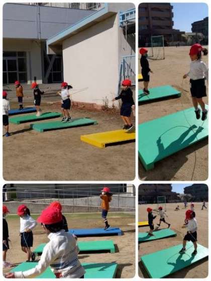 色々な跳び方にチャレンジしています。たくさん、練習してもっと上手になってくださいね。