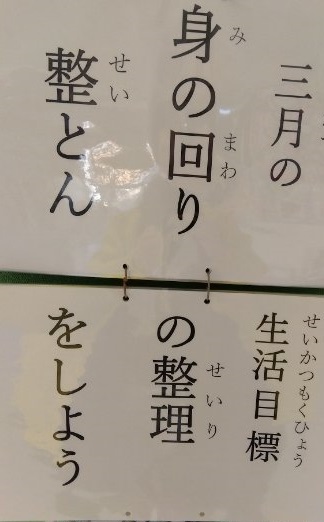 3月の生活目標は「身のまわりの整理整頓をしよう」です。