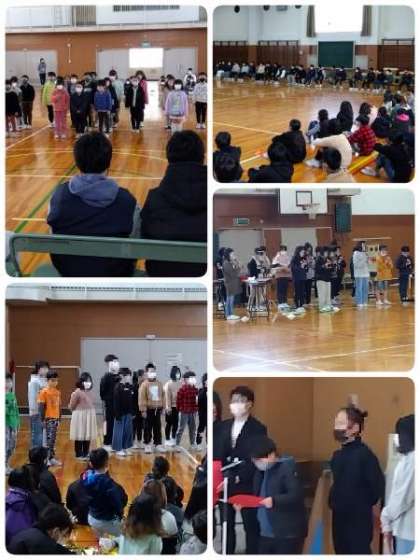 児童会が中心となって、卒業おめでとう集会が開かれました。もうすぐ卒業する6年生に「中学校での活躍を願い 感謝を伝え、お祝いしよう」をテーマにそれぞれの学年が、合奏や歌、呼びかけをしました。1年生は、パプリカの曲に合わせて、「6年生ありがとう」の替え歌を披露していました。