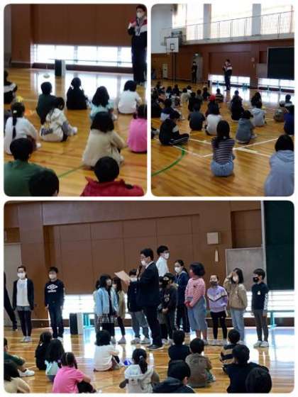 体育館で児童朝会を行いました。図書室の担当より、読書通帳の目標に達した児童へ表彰を行いました。「読書は心の栄養」です。これからもたくさん本に親しむようにしましょうね。