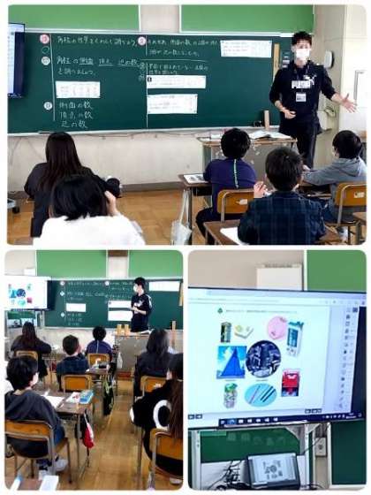 5年生の算数です。今日は、「角柱の性質をくわしく調べよう」との学習です。角柱の側面、頂点、辺の数について調べました。
