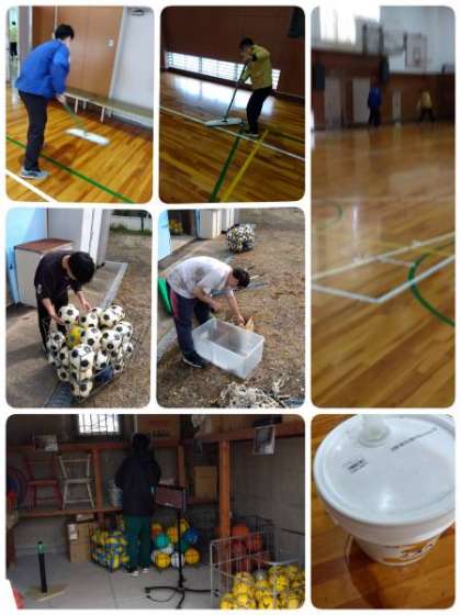 体育倉庫の整理や清掃、体育館のワックスがけなど、新年度に向けて、職員作業を行いました。