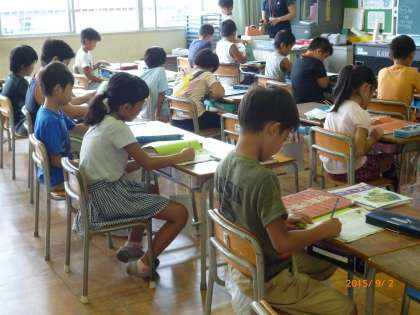 矢田北タイムが始まっています。朝の時間に「漢字タイム」(火曜日)、「読書タイム・フォニックスタイム」(水曜日)、「計算タイム」(金曜日)を設けています。