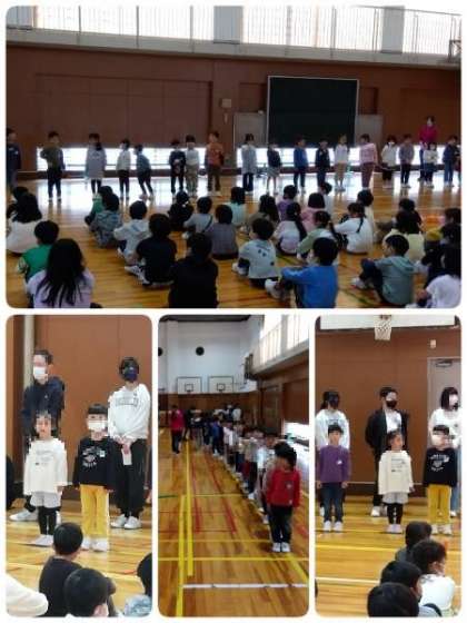 児童代表の「歓迎のあいさつ」のあと、2年生から「あさがおの種」をプレゼントしてもらいました。全員で校歌を歌った後、1年生からあいさつがありました。大きな声で「よろしくお願いします」と言えました。