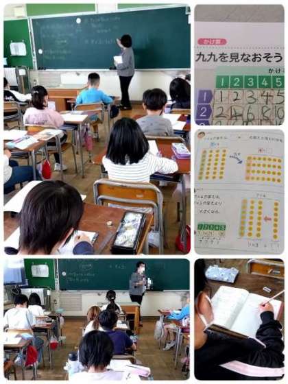 3年生の算数の時間です。2年生で学習した「九九」について、考えました。九九の仕組みをもう一度、振り返りしっかりと定着させることが「わり算」につながります。