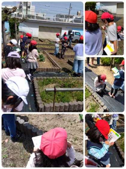 3年生の理科の学習です。2年生までの生活科から、新しく理科の学習が始まりました。今日は、学習園を観察して、虫や草花を探しました。