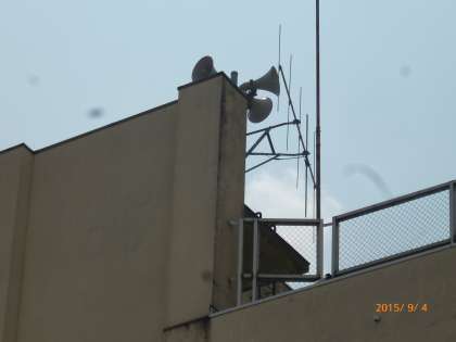 本校南校舎の屋上にあるスピーカーから訓練の合図が流されました。