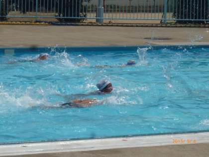 本校プールでの本年度最後のプール学習の様子です(3・4年生)。6年生は、午後からやたなか小中一貫校での4小学校水泳交流会に出かけます。