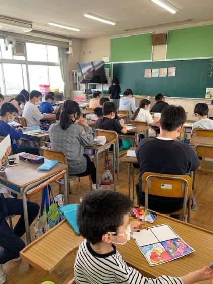 季節をテーマに色塗りをしました。とても集中して配色を考えていました。