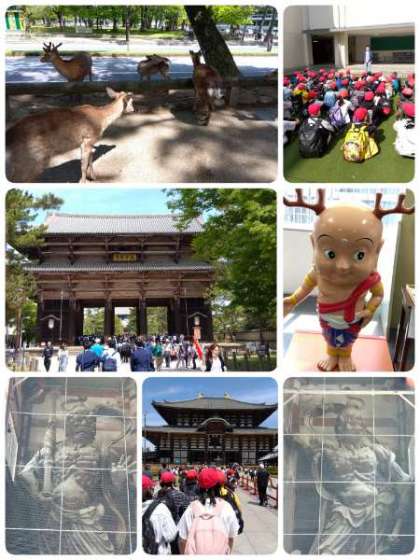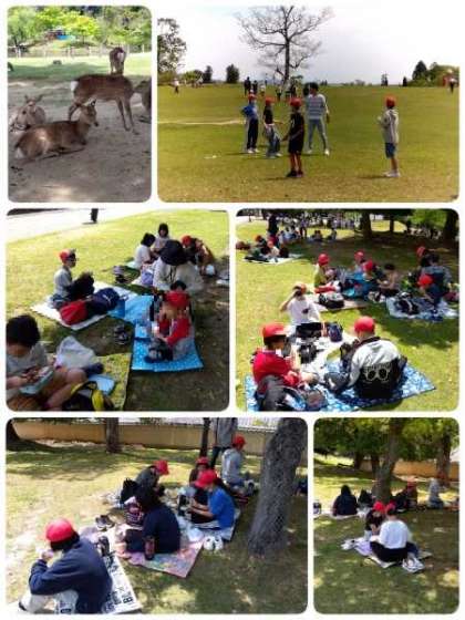 5・6年生で「奈良公園」へ遠足へ行きました。天候もよく、遠足日和です。天王寺からJRで「奈良駅」へ向かいました。