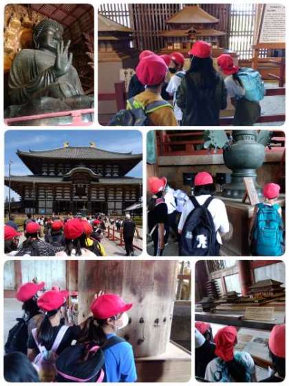 東大寺では、奈良の大仏を見学し、その大きさに驚きました。