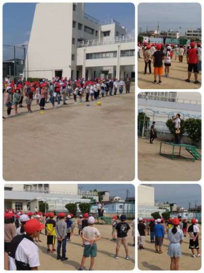 児童朝会を運動場でで行いました。日差しも少しずつ厳しくなってきましたが、水分補給をして、元気に過ごしましょう。