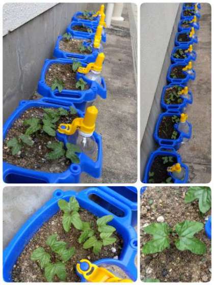1年生は、あさがおを育てています。毎日、水やりを頑張っています。かわいい「芽」が出てきました。