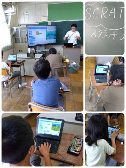 パソコンクラブの様子です。「スクラッチ」をしています。慣れた様子で、キーを操作して、プログラミングをしていました。