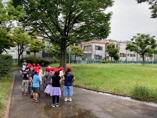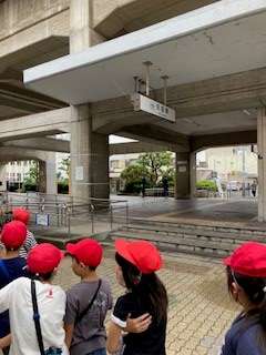 2年生が校区たんけんに行きました。水分補給をしながら、校区内にある公園や、駅、商店街など確認しながら一生懸命歩きました👣