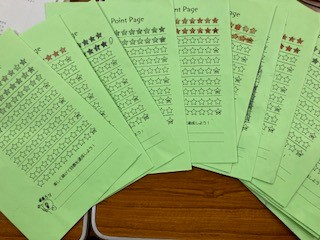 子どもたちががんばって発言したとき、アルファベットを丁寧に書いているときなどにポイントを貯めています。「伝説のすシール(寿司のシール)をゲットするためにがんばる」とやる気を出している子もいます!