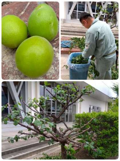 校内の「梅の木」に梅の実が、できました。本校の管理作業員が剪定作業をしている時にいくつかとってくれました。