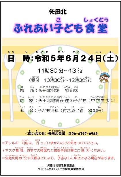 矢田北 ふれあい子ども食堂(6月の案内)
