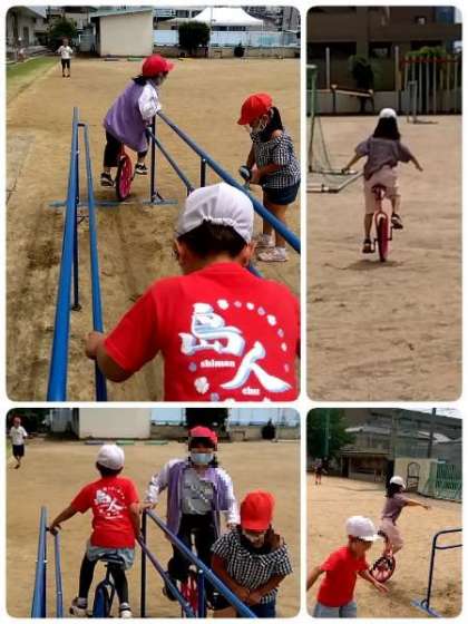 休み時間には、一輪車練習台でたくさんの児童が練習をしています。今は、まだ乗れなくても毎日挑戦することで、コツがつかめます。みんな頑張ってくださいね。