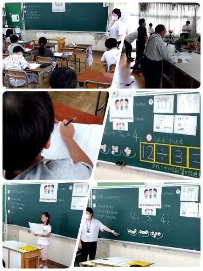 3年生の研究授業を行いました。算数科の単元「わり算」の学習です。めあてを「同じ数ずつ分けるときの計算の仕方を考えよう」とし、学習しました。