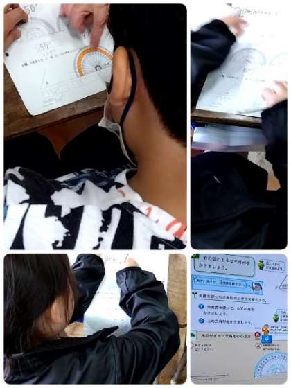 4年生の算数の時間です。分度器を使って、作図をしていました。しっかりメモリを見て、角度を調べましょう。(6月16日 記事)