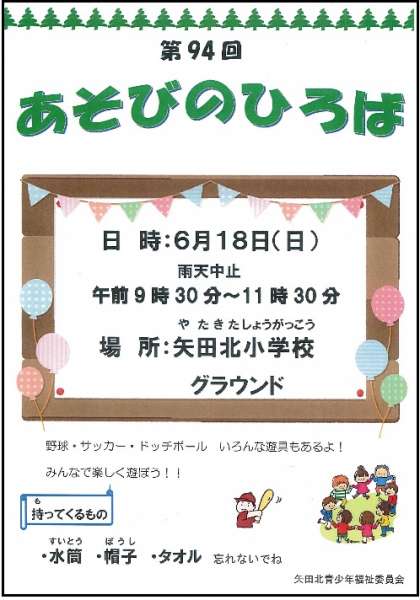 矢田北青少年福祉委員会の「あそびのひろば」を開催します。