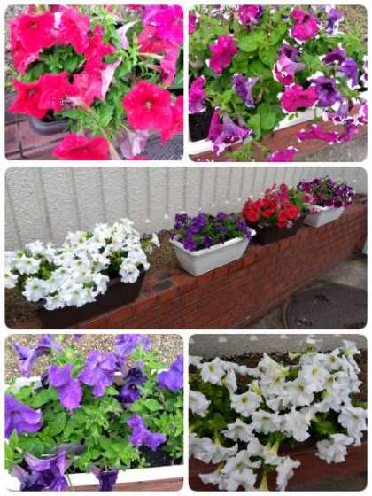 正門近くの花壇に色鮮やかなきれいな花が咲いています。ペチュニアの花です。本校、管理作業員が世話をしています。