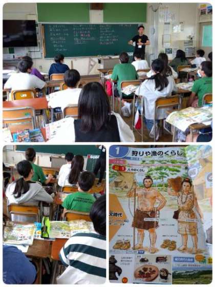 6年生の社会の授業です。「大昔のくらし」について学習しています。「縄文時代と弥生時代のちがい」について、学習を進めました。
