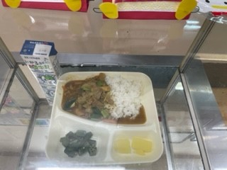 今日の給食は、「わふうカレーどんぶり」「ぎゅうにゅう」「オクラのかつおうめふうみ」「りんご(カットかん)」です。