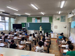 1年生は、音楽で打楽器を使って「ぶんぶんぶん」の演奏と歌唱を楽しんでいました。