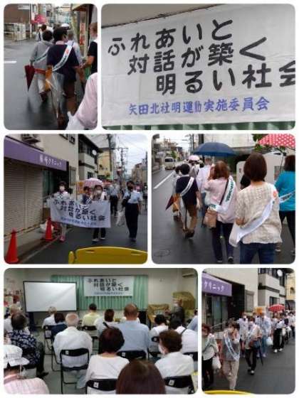第73回「社会を明るくする運動」のミニ集会が矢田北会館にて行われました。集会終了後、矢田駅まで運動の周知活動を行いました。