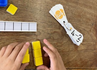 1年生の算数科の学習の様子です。授業の最後に、計算カードを使って、引き算のレベルアップを目指してたくさんカードをめくっていました。ブロックで考えたり、ひたすら暗記したりと、自分に合った学習法で取り組んでいました。