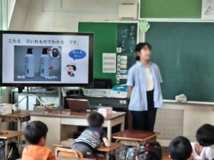 点字に触れてみたり、目が見えなくてもシャンプーやコンディショナーを見分ける方法や、目隠しして物を当てる活動など、子どもたちは熱心にお話を聞いて、取り組んでいました!!