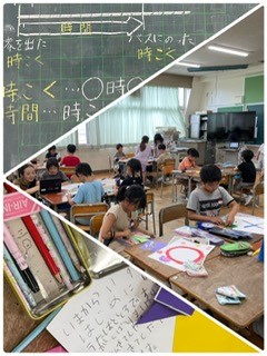 グループに分かれて座り、時刻と時間の関係について学習しました。