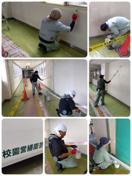 大阪市の営繕作業班の協力を得て、中館2階の壁面塗装を行っています。今週いっぱいで作業が終わります。作業後が楽しみです。