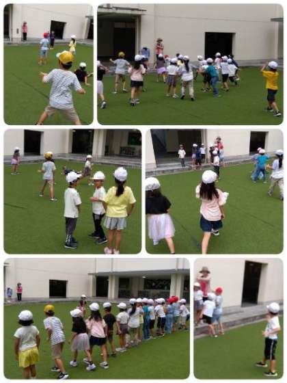 1学期のお楽しみ会の様子です。1年生は、中庭で「だるまさんがころんだ」をしていました。じっとして、動かないようにしている姿がとてもかわいらしいですね。