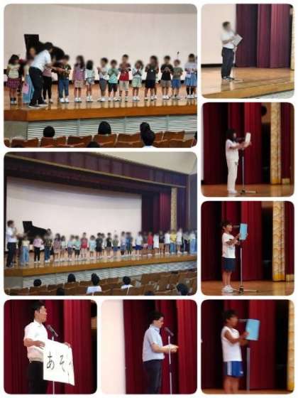 1学期の終業式を行いました。1学期も子どもたちは、様々な取り組みに挑戦してきました。読書通帳の表彰を行ったあと、代表の児童が力いっぱい1学期の思い出を発表しました。また、担当から夏の生活についての話やプール開放、自習ルーム、平和登校日の話がありました。
