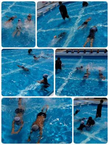 高学年はフォームを修正しながら25mに挑戦する人、25m以上に挑戦する人と自分の目標に向かって、取り組んでいます。今日は、平泳ぎも行いました。