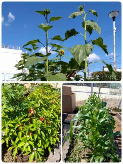 学習園の「ひまわり」や「トウモロコシ」が、大きく育っています。