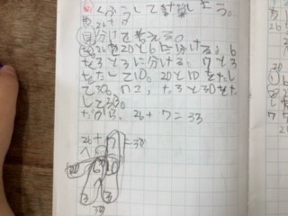 2年生の算数では「くふうして計算しよう」と足し算の問題に取り組みました。自分の考えを発表したり、友だちの考えを予想したりしながら、学習に取り組んでいました。