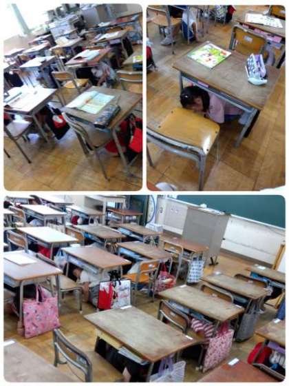 放送がなると、児童は一斉に机の下に避難しました。携帯電話等の「緊急地震速報」も鳴り響き、子どもたちも真剣な表情で取り組んでいました。地震は、いつ来るかわかりません。日頃から意識して、生活しましょう。
