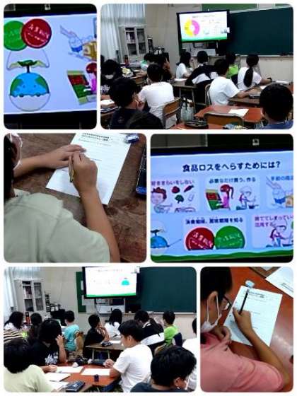 6年生がキューピー出前授業でSDGSについて学習しました。SDGSの「つくる責任・つかう責任」の達成に向け、何ができるかについて、考えました。「エコバックを使う」「食べれるものを残さない」「賞味期限・消費期限をよく見る」など、今できることについて意見が出ました。