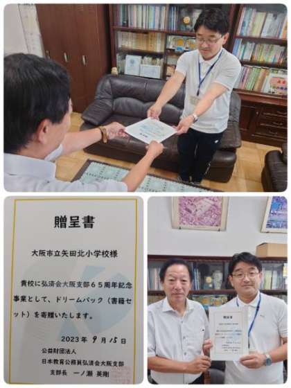 日本教育公務員弘済会大阪支部 様より、ドリームパック(書籍セット)を寄贈していただきました。寄贈していただいた図書の本は、図書館にコーナーを設け、いつでも読めるようにし、大切に使わせていただきます。