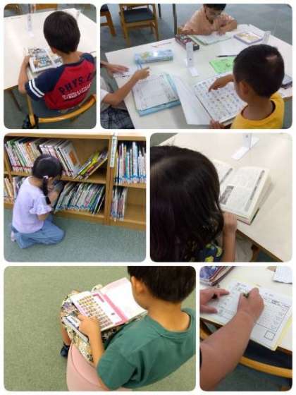 毎週、火曜日の20分休みには、図書館開放をしています。自分の好きな本を選んで、ゆっくりと読書をしています。