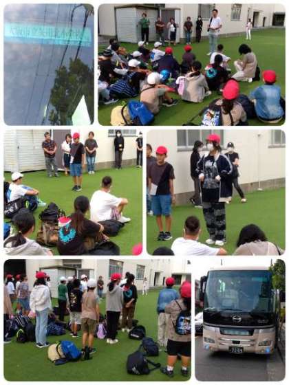 今日から6年生が三重県志摩・信楽方面へ修学旅行に行きます。とても良い天気です。出発式のあと、元気に出発しました。楽しい思い出をたくさん作ってきます