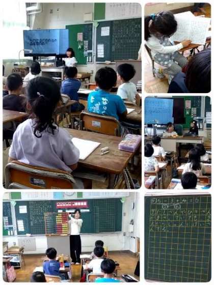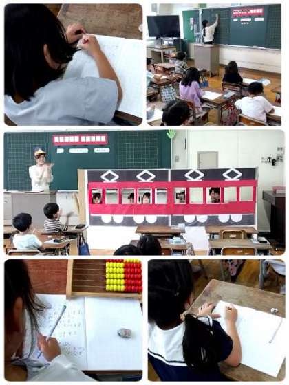 1年生の研究授業を行いました。算数科の単元「3つのかずのけいさん」の学習です。めあてを「けいさんのしかたをかんがえよう」とし、学習しました。