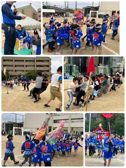 徒競走や、玉入れ、デカパン競走、綱引きなど、矢田北小学校の子どもたちもたくさん参加していました。今年度は、「あそびのひろば」から「子どもみこし」の参加もあり、大変盛り上がりました。雨が心配でしたが、何とか競技を続けることができ、楽しい時間を過ごすことができました。