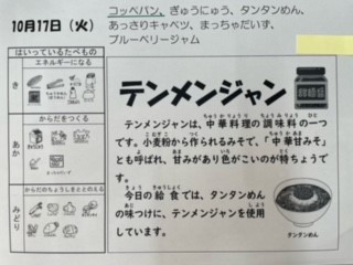 今日の給食では、タンタンめんの味つけに、テンメンジャンを使用しています。