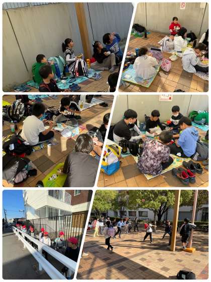 お昼は科学館の近くでお弁当を食べました。少し疲れている表情の児童も、お弁当を食べるとすぐに元気になっていました。
