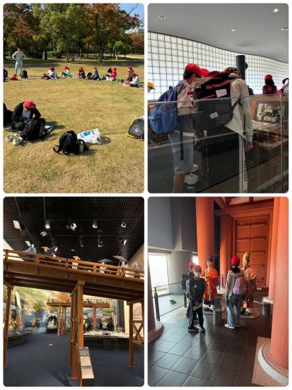 6年生が社会見学で、「ピース大阪、歴史博物館」へ行きました。原子爆弾の模型が1トンもあることを学び、防空壕の体験もしました。歴史博物館では、昔ながらの大阪を楽しみながら見学しました。